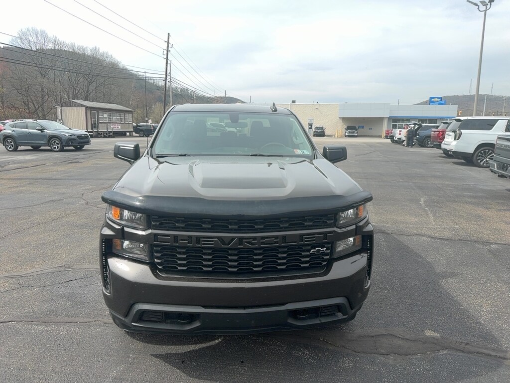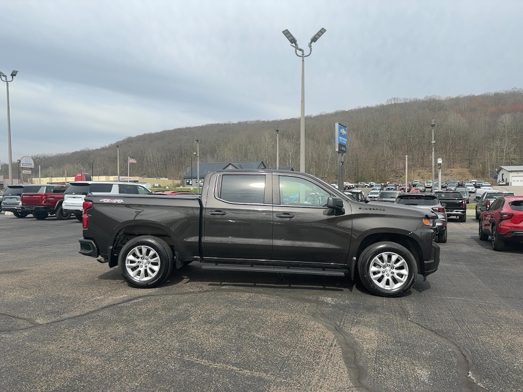 Priced below KBB Fair Purchase Price! Odometer is 19438 miles below market average! 8-Speed Automatic, 4WD, Black Cloth, 120-Volt Bed Mounted Power Outlet, 120-Volt Instrument Panel Power Outlet, 170 Amp Alternator, 220 Amp Alternator, 3.42 Rear Axle Ratio, 3.5" Diagonal Monochromatic Display, 4-Wheel Disc Brakes, 40/20/40 Front Split Bench Seat, 4G LTE Wi-Fi Hot Spot Capable, 6 Speakers, ABS brakes, Air Conditioning, Alloy wheels, AM/FM radio: SiriusXM, Apple CarPlay/Android Auto, Auto-Locking Rear Differential, Automatic Stop/Start, Black Name Plates (LPO), Black Tailgate CHEVROLET Lettering (LPO), Bluetooth® For Phone, Body Color Grille, Brake assist, Bumpers: body-color, Chevrolet Connected Access Capable, Chevytec Spray-On Black Bedliner, Cloth Seat Trim, Color-Keyed Carpeting Floor Covering, Compass, Custom Convenience Package, Custom Value Package, Dark Essentials Package (LPO), Deep-Tinted Glass, Delay-off headlights, Driver door bin, Driver vanity mirror, Dual front impact airbags, Dual front side impact airbags, Electric Rear-Window Defogger, Electronic Cruise Control, Electronic Stability Control, EZ Lift Power Lock & Release Tailgate, Front anti-roll bar, Front Black Bowtie Emblem (LPO), Front Center Armrest w/Storage, Front Frame-Mounted Black Recovery Hooks, Front reading lights, Front Rubberized Vinyl Floor Mats, Front wheel independent suspension, Fully automatic headlights, Heated door mirrors, Heavy Duty Suspension, Hitch Guidance, Illuminated entry, Infotainment Package, Integrated Trailer Brake Controller, LED Cargo Area Lighting, Low tire pressure warning, Manual Tilt Wheel Steering Column, Molded Black Splash Guards (LPO), Occupant sensing airbag, OnStar & Chevrolet Connected Services Capable, Outside temperature display, Overhead airbag, Overhead console, Panic alarm, Passenger door bin, Passenger vanity mirror, Polished Exhaust Tip, Power Door Locks, Power door mirrors, Power Front Windows w/Driver Express Up/Down, Power Front Windows w/Passenger Express Down, Power Rear Windows w/Express Down, Power steering, Power windows, Preferred Equipment Group 1CX, Premium audio system: Chevrolet Infotainment 3, Radio data system, Radio: Chevrolet Infotainment 3 System, Rear 60/40 Folding Bench Seat (Folds Up), Rear reading lights, Rear Rubberized-Vinyl Floor Mats, Rear step bumper, Rear window defroster, Remote Keyless Entry, Remote keyless entry, Remote Vehicle Starter System, Security system, Single-Zone Manual/Semi-Automatic Air Conditioning, SiriusXM Radio, Speed control, Speed-sensing steering, Split folding rear seat, Standard Tailgate, Tachometer, Theft Deterrent System (Unauthorized Entry), Tilt steering wheel, Traction control, Trailering Package, Trip computer, Variably intermittent wipers, Voltmeter, Wheel Locks (Set of 4) (LPO), Wheels: 20" x 9" Bright Silver Painted Aluminum. 2021 Chevrolet Silverado 1500 Custom 4D Crew Cab Oxford Brown Metallic 4WD 8-Speed Automatic 2.7L Turbo