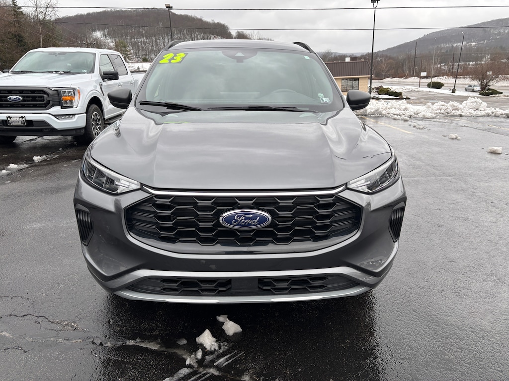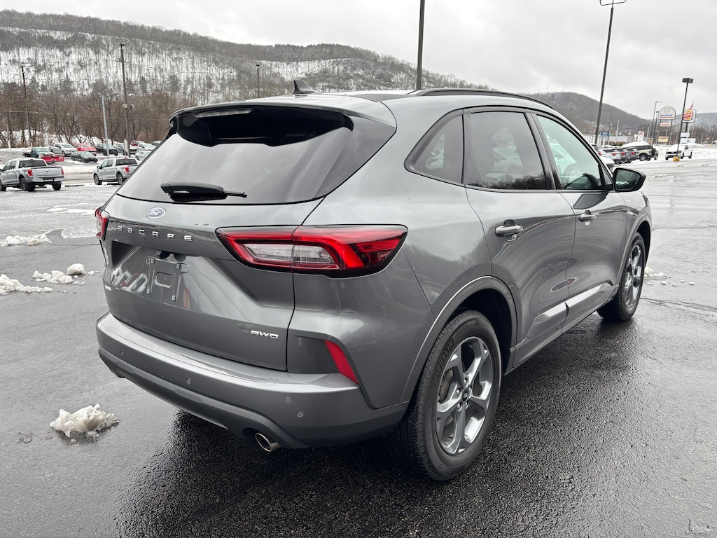 Carbonized Gray Metallic 2023 Ford Escape ST-Line AWD 8-Speed Automatic 1.5L EcoBoost AWD, AM/FM radio: SiriusXM, Automatic temperature control, Connected Built-In Navigation, Equipment Group 300A, Ford Co-Pilot360 Assist+, Heated front seats, Heated steering wheel, Intelligent Adaptive Cruise Control w/Stop-and-Go, Power driver seat, Power Liftgate, Rear Parking Sensor, Rear-View Camera, Speed Sign Recognition, SYNC 4 w/Enhanced Voice Recognition, Tech Pack #1, Vinyl/Cloth Front Sport Contour Bucket Seats, Wheels: 18" Rock Metallic Painted Aluminum.