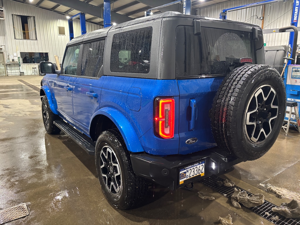 Blue Metallic 2024 Ford Bronco Outer Banks 4WD 10-Speed Automatic 2.3L EcoBoost I-4 Local Trade, 10 Speakers w/Subwoofer, 18" Bright Machined Aluminum Wheels, 360-Degree Camera, Adaptive Cruise Control, Additional Sound Deadening, AM/FM radio: SiriusXM with 360L, Brush Guard, Carbonized Gray Molded-In-Clr Hard Top w/o Headliner, Equipment Group 314A High/Lux Package, Evasive Steering Assist, Front Parking Sensors, Heated front seats, Heated Steering Wheel, Information on Demand Panel, Navigation system: Connected Navigation, Radio: B&O Sound System by Bang & Olufsen, Rear-Window Defroster & Washer, Sideview Mirrors, SYNC 4, Universal Garage Door Opener, Wireless Charging Pad.