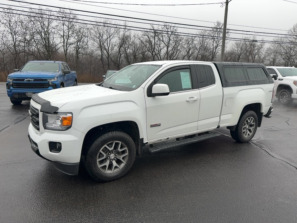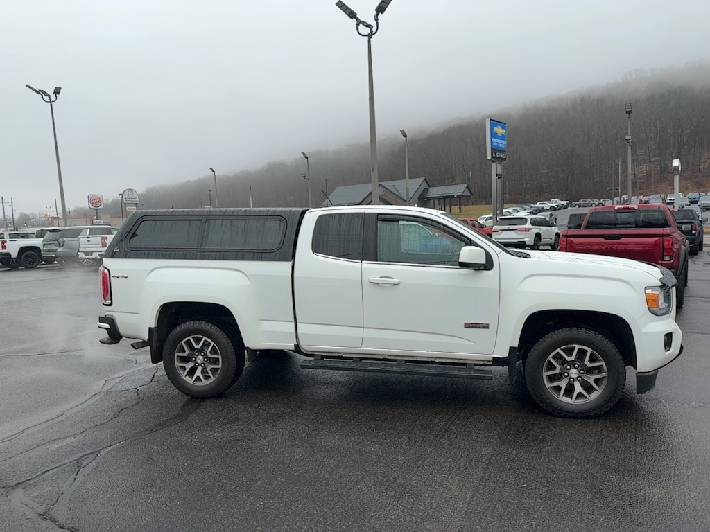 4WD, 3.42 Rear Axle Ratio, 4-Way Power Front Passenger Seat Adjuster, 4-Wheel Disc Brakes, 6 Speakers, 6-Speaker Audio System Feature, ABS brakes, Air Conditioning, Alloy wheels, AM/FM radio: SiriusXM, Apple CarPlay/Android Auto, Auto-dimming Rear-View mirror, Automatic temperature control, Bumpers: body-color, Cloth Seat Trim, Compass, Delay-off headlights, Driver 6-Way Power Seat Adjuster, Driver door bin, Driver vanity mirror, Dual front impact airbags, Dual front side impact airbags, Electronic Stability Control, Exterior Parking Camera Rear, Front & Rear Splash Guards, Front anti-roll bar, Front Bucket Seats, Front Center Armrest, Front fog lights, Front reading lights, Front wheel independent suspension, Fully automatic headlights, HD Radio, Heated door mirrors, Heated Driver & Front Passenger Seats, Heated front seats, Illuminated entry, Low tire pressure warning, Occupant sensing airbag, Outside temperature display, Overhead airbag, Overhead console, Panic alarm, Passenger door bin, Passenger vanity mirror, Power door mirrors, Power Driver Lumbar Control Seat Adjuster, Power driver seat, Power Passenger Lumbar Control Seat Adjuster, Power passenger seat, Power steering, Power windows, Preferred Equipment Group 4SB, Premium audio system: GMC Infotainment System, Radio data system, Radio: AM/FM w/8" Diagonal Color Touch-Screen, Rear step bumper, Rear window defroster, Remote keyless entry, Security system, SiriusXM Radio, Speed control, Speed-sensing steering, Split folding rear seat, Steering wheel mounted audio controls, Tachometer, Telescoping steering wheel, Tilt steering wheel, Tow/Haul Mode, Traction control, Trailering Assist Guideline Hitch Guidance, Trailering Package, Trip computer, Variably intermittent wipers, Wheels: 17" x 8" Dark Argent Metallic. 2019 GMC Canyon All Terrain Summit White 4WD 8-Speed Automatic V6