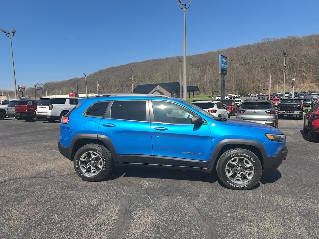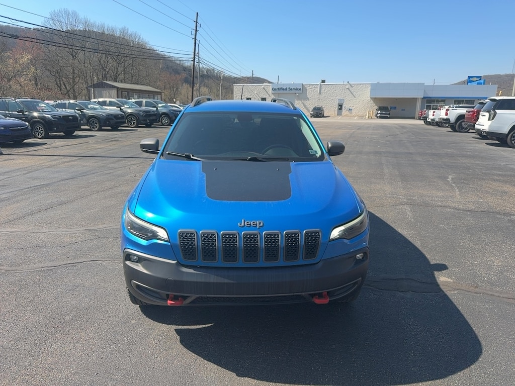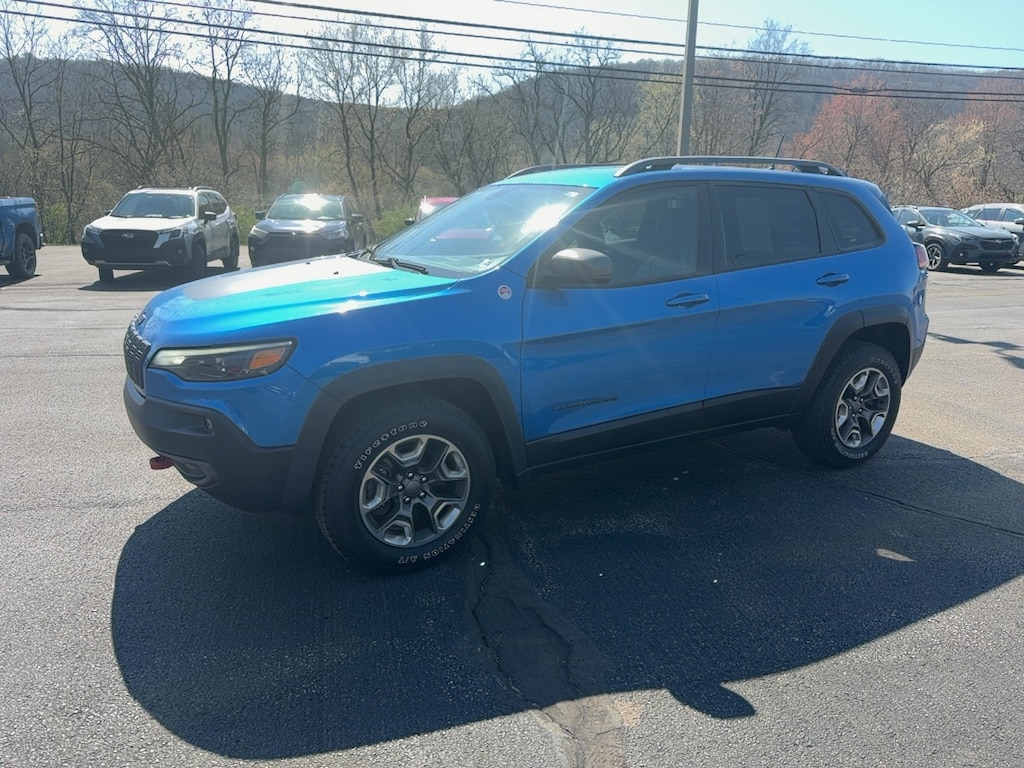 Odometer is 52880 miles below market average! 3.517 Axle Ratio, 4-Wheel Disc Brakes, 6 Speakers, 8.4" Touchscreen Display, ABS brakes, Air Conditioning, Alloy wheels, AM/FM radio: SiriusXM, Anti-whiplash front head restraints, Apple CarPlay, Apple CarPlay/Android Auto, Automatic temperature control, AutoStick Automatic Transmission, Auxiliary Transmission Oil Cooler, Brake assist, Cloth/Premium Vinyl Bucket Seats, Compass, Delay-off headlights, Driver door bin, Driver vanity mirror, Dual Bright Exhaust Tips, Dual front impact airbags, Dual front side impact airbags, Electronic Stability Control, Engine Oil Cooler, Exterior Mirrors Courtesy Lamps, Exterior Mirrors w/Supplemental Signals, Four wheel independent suspension, Front anti-roll bar, Front Bucket Seats, Front Center Armrest, Front dual zone A/C, Front fog lights, Front reading lights, Fully automatic headlights, Google Android Auto, GPS Antenna Input, Heated door mirrors, Hill Descent Control, Illuminated entry, Integrated Voice Command w/Bluetooth, Knee airbag, Leather Shift Knob, Low tire pressure warning, Manufacturer's Statement of Origin (DISC), Occupant sensing airbag, Off Road Suspension, Outside temperature display, Overhead airbag, Overhead console, Panic alarm, ParkView Rear Back-Up Camera, Passenger door bin, Passenger vanity mirror, Power door mirrors, Power driver seat, Power steering, Power windows, Quick Order Package 27E Trailhawk, Radio data system, Radio: Uconnect 4 w/8.4" Display, Rear anti-roll bar, Rear reading lights, Rear seat center armrest, Rear side impact airbag, Rear window defroster, Rear window wiper, Remote keyless entry, Roof rack: rails only, SiriusXM Satellite Radio, Speed control, Speed-sensing steering, Split folding rear seat, Spoiler, Steering wheel mounted audio controls, Stop-Start Multiple VSM System, Tachometer, Telescoping steering wheel, Tilt steering wheel, Traction control, Trip computer, Turn signal indicator mirrors, USB Host Flip, Variably intermittent wipers, Voltmeter, Wheels: 17" x 7.5" Painted/Polished Aluminum. 2019 Jeep Cherokee Trailhawk 4D Sport Utility Hydro Blue Pearlcoat 4WD 9-Speed 948TE Automatic 3.2L V6