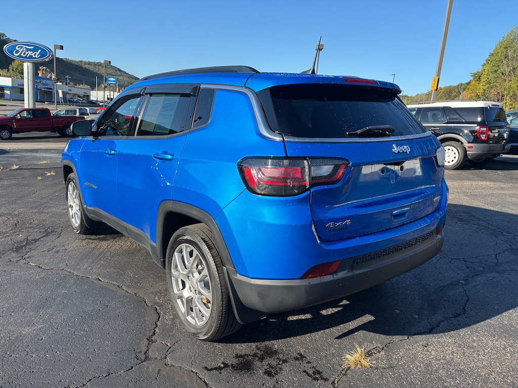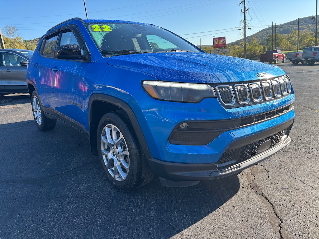 Laser Blue Pearlcoat 2022 Jeep Compass Latitude Lux 4WD 9-Speed 948TE Automatic 2.4L I4 Local Trade, 4WD, Heated front seats, Heated steering wheel, Leather Trimmed Bucket Seats, LED Low/Highbeam Projector Headlamps, MOPAR All-Weather Floor Mats, MOPAR Interior Protection Package, MOPAR Molded Cargo Tray, Power driver seat, Power Front/Fixed Rear Full Sunroof, Premium Alpine Speaker System, Premium LED Fog Lamps, Premium Lighting Group, Premium Taillamps, Quick Order Package 2GL, Sun and Sound Group, Wheels: 18" x 7.0" Painted Aluminum.